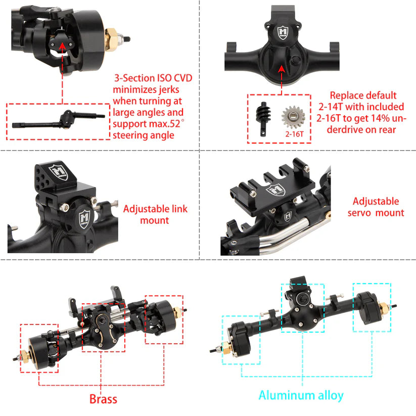 MEUS Racing Mullet Setup SCX24 Metal V2 Isokinetic Front Axle & Portal Rear Axle for Axial 1/24 SCX24 RC Crawler