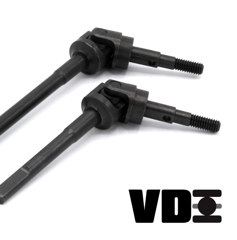 L'essieu avant droit F10 utilise le jeu de pignons de sous-multiplication VPS08331 (8/33) associé à l'essieu arrière à portique F10 et au jeu de pignons de surmultiplication VPS08332 (8/32) avec pignons de portique surmultipliés. L'essieu arrière à portique F10 est doté d'un troisième élément inversé pour corriger la rotation du portique. Associé à un jeu de pignons légers de 21 % dans la transmission VFD, le surmultiplication global atteint 34 %. Nous recommandons des moyeux SLW de 475 à l'avant et de 350 à l'arrière pour s'adapter aux différentes largeurs d'essieu.