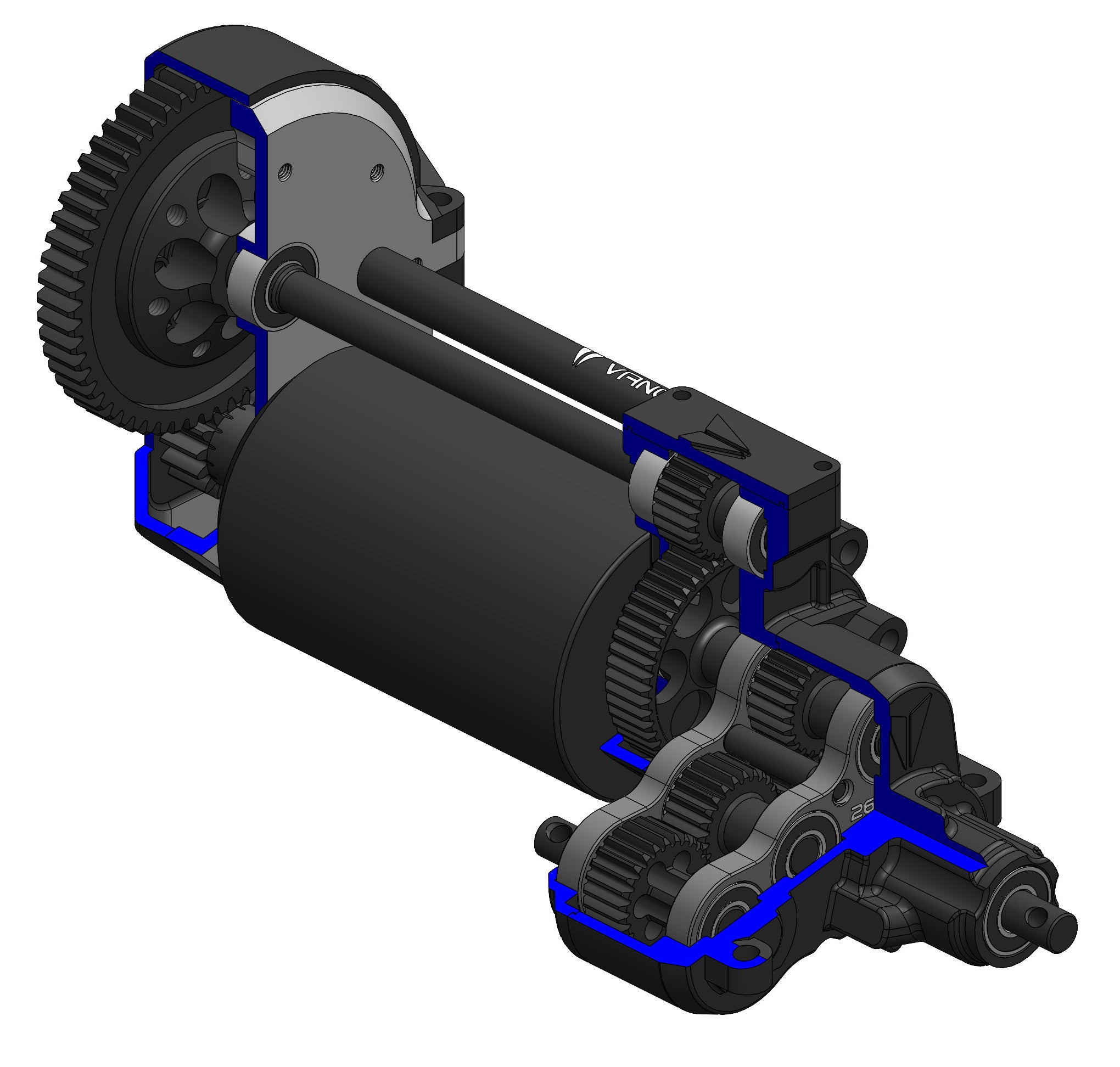 La transmission VFD est conçue pour des performances optimales, une esthétique digne d'une maquette, une robustesse et une polyvalence accrue. Le moteur est positionné vers l'avant et bas pour une répartition idéale du poids. La transmission VFD Carbon Spec offre une surmultiplication de 21 % pour des virages et des montées optimisés sans solliciter l'électronique. Le carter en T est doté de plaques de roulement en aluminium pour une résistance accrue. Compatible avec les moteurs 540 à balais et sans balais*.